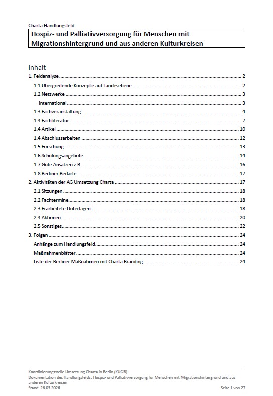 Weitere Dokumente zum Handlungsfeld "Hospiz- und Palliativversorgung für Menschen mit Migrationshintergrund und aus anderen Kulturkreisen" befinden sich in der "Guten Praxis Datenbank".