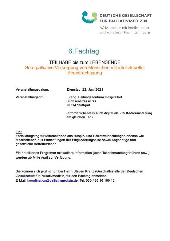 - Palliativversorgung von Menschen mit geistiger Behinderung