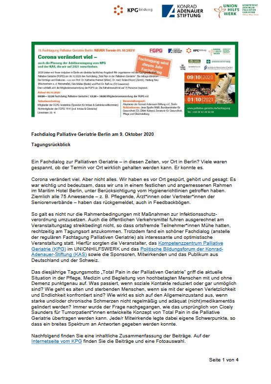 Tagungsrückblick des Fachdialogs Palliative Geriatrie Berlin am 09.10.2020