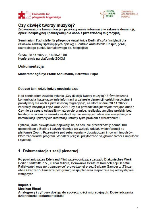 Zrównoważona komunikacja i przekazywanie informacji w zakresie demencji, opieki hospicyjnej i paliatywnej dla osób z przeszłością migracyjną