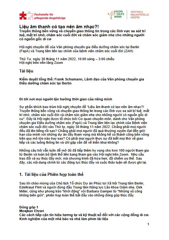 Truyền thông bền vững và chuyển giao thông tin trong các lĩnh vực sa sút trí tuệ, mất trí nhớ, chăm sóc cuối đời và chăm sóc giảm nhẹ cho những người có nguồn gốc di cư