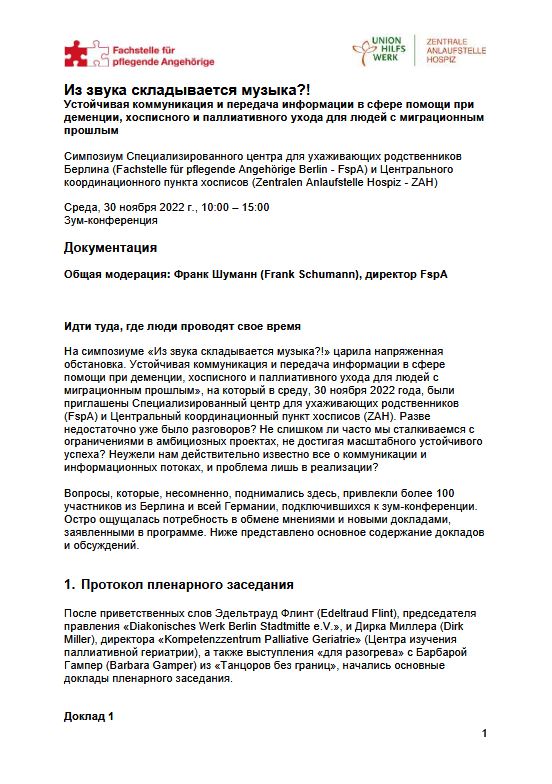 Устойчивая коммуникация и передача информации в сфере помощи при деменции, хосписного и паллиативного ухода для людей с миграционным прошлым