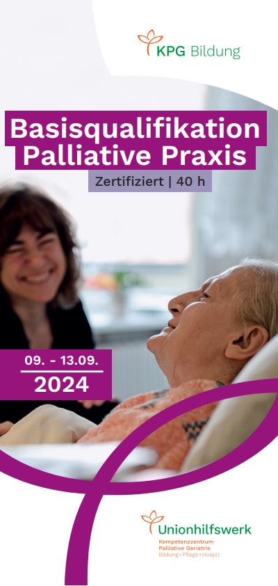 Für pflegebedürftige alte Menschen ist hospizlich-palliative Versorgung weit vor der Sterbephase wichtig. Das Curriculum vermittelt auch Mitarbeiterinnen ohne Fachqualifizierung Basiswissen in der Pflege und Betreuung. Schwerpunkt ist die Begleitung von Menschen mit Demenz anhand einer handlungs- und praxisorientierten Fallgeschichte.