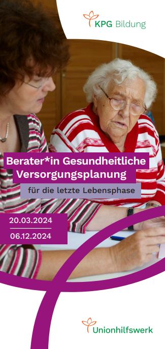 Kursbeschreibung: Gesundheitiche Versorgungsplanung für die letzte Lebensphase (GVP) ist in stationären Pflegeeinrichtungen und Einrichtungen der Eingliederungshilfe ein wihtiges und zusätzliche finanzierbares Angebot. Ziel ist ein fachlich fundierter Dialogprozess zwischen Bewohnern und Beratern bzgl. der Wünsche zur letzten Lebensphase unter Beteiligung der Ärzte und des Versorgungsteams.