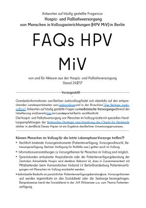 Hospiz- und Palliativversorgung von Menschen in Vollzugseinrichtungen (HPV MiV) in Berlin