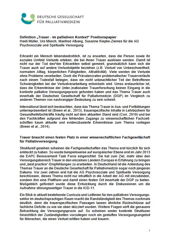 Definition „Trauer - im palliativen Kontext“ Positionspapier