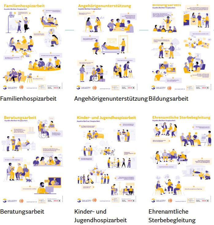 Die Bilder dürfen nur unter Angabe des Copyrights „Quelle: Hospiz- und PalliativVerband Berlin e.V. | Gestaltung (Illustration) mischen Berlin“ verwendet werden.