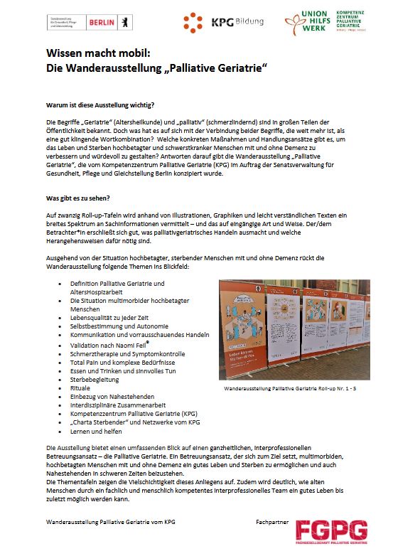 Es werden u.a. die Themen: Definition Palliative Geriatrie und Altershospizarbeit, die Situation multimorbider hochbetagter Menschen, Lebensqualität zu jeder Zeit, Selbstbestimmung und Autonomie, Kommunikation und vorrausschauendes Handeln auf leicht verständliche Weise dargestellt.