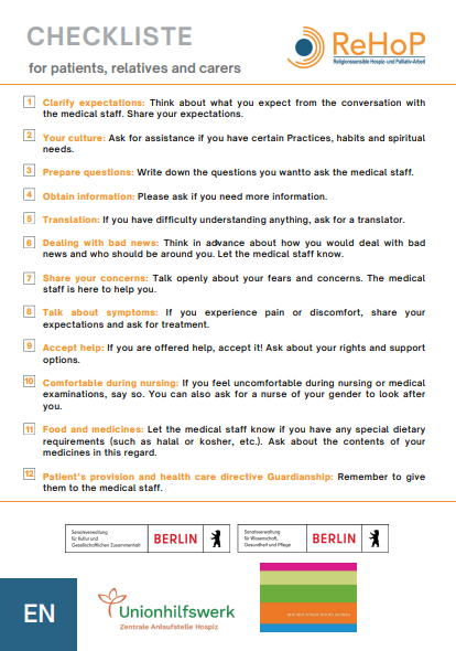 Checkliste für Patienten, An- und Zugehörige in deutscher Sprache.