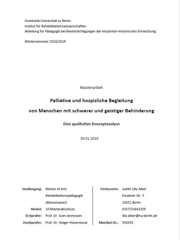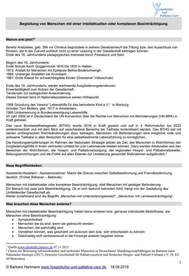 Palliative und hospizliche Begleitung von Menschen mit schwerer und geistiger Behinderung