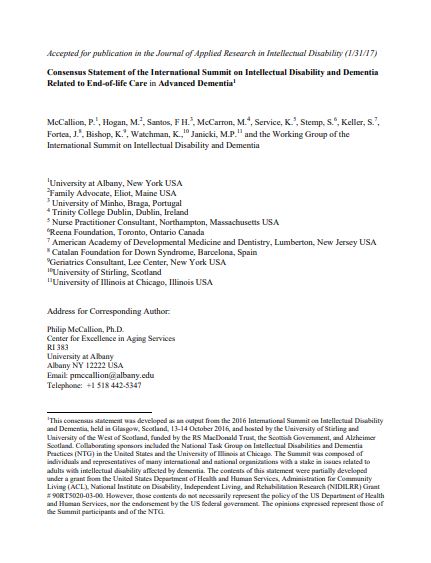 Consensus Statement of the International Summit on Intellectual Disability and Dementia Related to End-of-life Care in Advanced Dementia