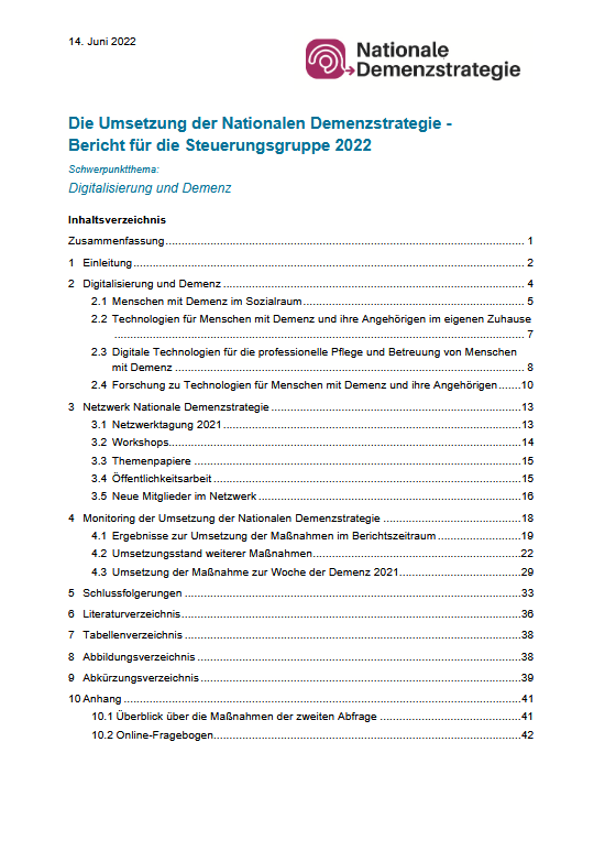 Die Umsetzung der Nationalen Demenzstrategie - Bericht für die Steuerungsgruppe 2022