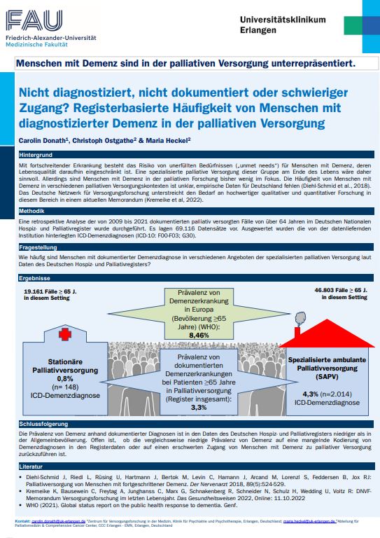 Poster. 22. Deutscher Kongress für Versorgungsforschung. 04. – 06.10.2023. Berlin. Menschen mit Demenz sind in der palliativen Versorgung unterrepräsentiert. (Friedrich-Alexander-Universität / Universitätsklinikum Erlangen