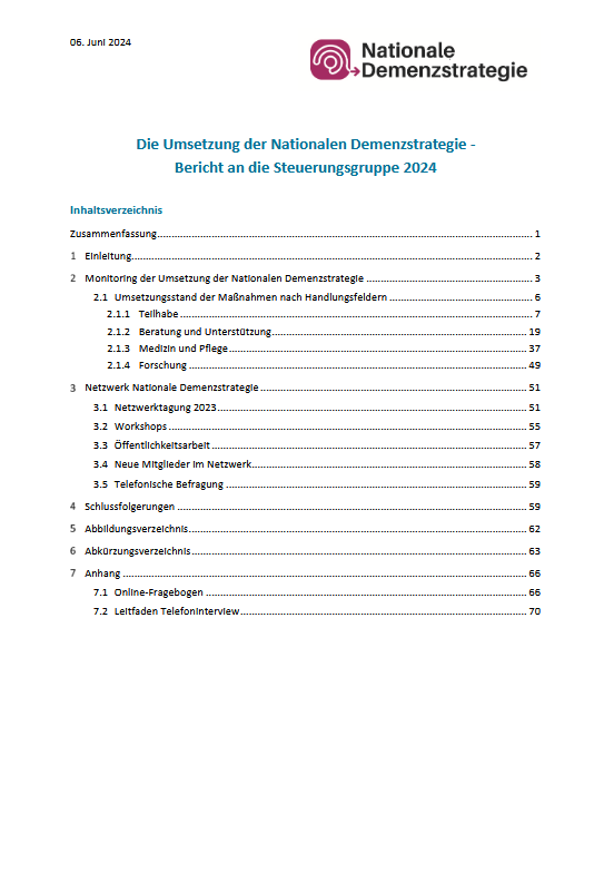 Die Umsetzung der Nationalen Demenzstrategie - Bericht an die Steuerungsgruppe 2024