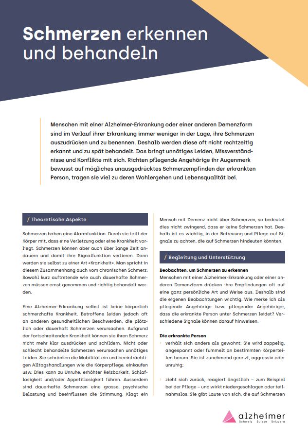 Menschen mit einer Alzheimer-Erkrankung oder einer anderen Demenzform sind im Verlauf ihrer Erkrankung immer weniger in der Lage, ihre Schmerzen auszudrücken und zu benennen. (...)
