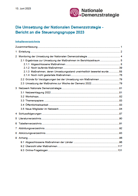 Die Umsetzung der Nationalen Demenzstrategie - Bericht an die Steuerungsgruppe 2023