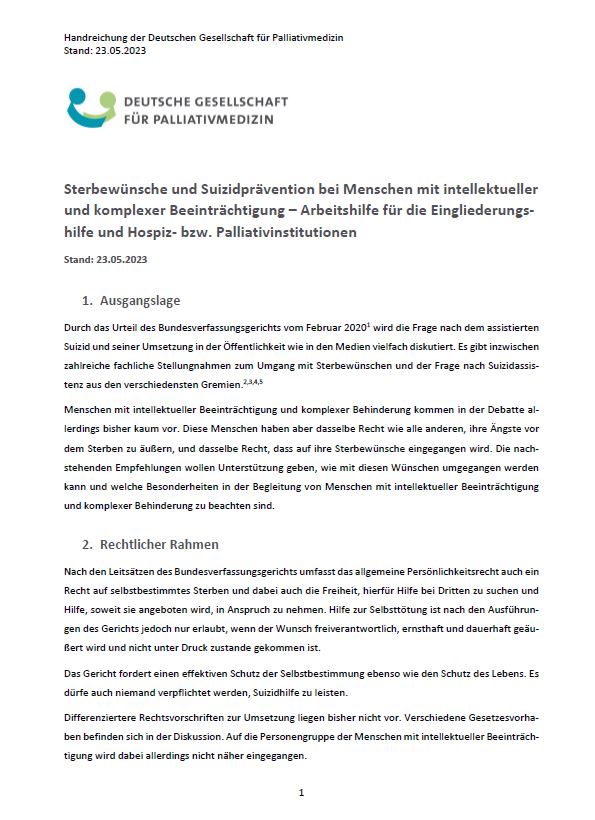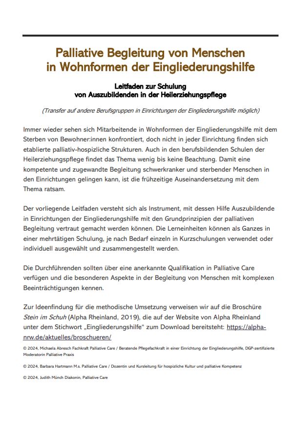 Eine Arbeitshilfe für die Eingliederungshilfe und Hospiz- bzw. Palliativinstitutionen
