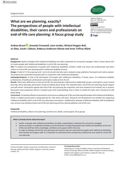 Artikel aus Palliative Medicine 2024, Vol. 38(6) 669–678; Autoren: Andrea Bruun , Amanda Cresswell, Leon Jordan, Richard Keagan-Bull, Jo Giles, Sarah L Gibson, Rebecca Anderson-Kittow und Irene Tuffrey-Wijne