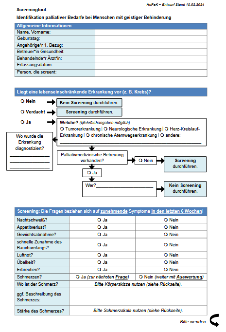 Screeningtool: Identifikation palliativer Bedarfe bei Menschen mit komplexer Behinderung