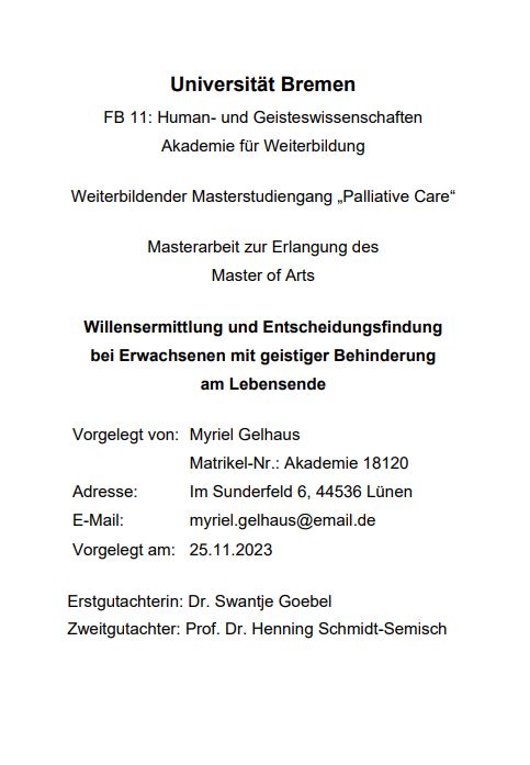 Willensermittlung und Entscheidungsfindung bei Erwachsenen mit geistiger Behinderung am Lebensende