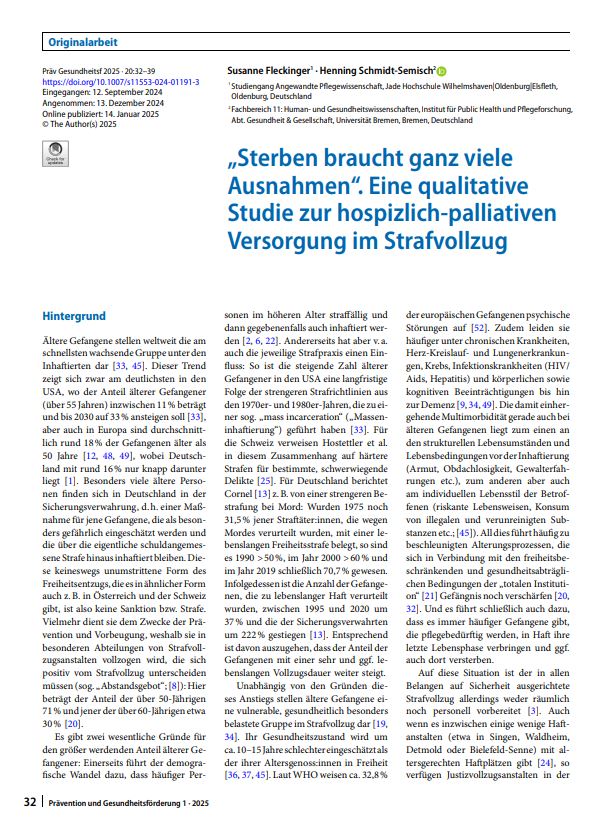 "Sterben braucht ganz viele Ausnahmen". Eine qualitative Studie zur hospizlich-palliativen Versorgung im Strafvollzug