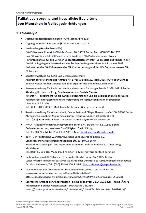 Hospiz- und Palliativversorgung in Berlin für Menschen in Vollzugseinrichtungen
