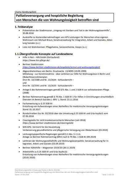 Handlungsleitfaden zur Absicherung im Krankheitsfall für Menschen ohne eigenen Wohnraum und ohne Krankenversicherung mit palliativem und/oder hospizlichem Bedarf
