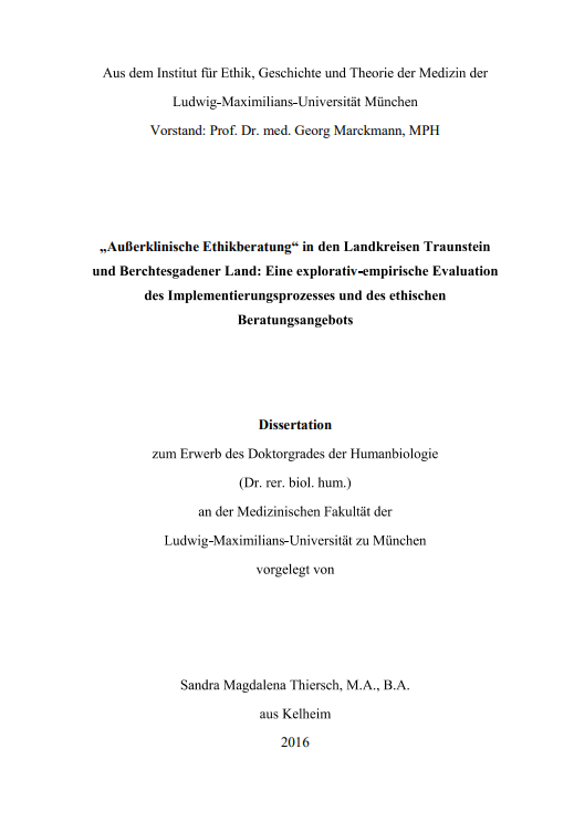 in den Landkreisen Traunstein und Berchtesgadener Land: eine explorativ-empirische Evaluation des Implementierungsprozesses und des ethischen Beratungsangebots. Dissertation, LMU München: Medizinische Fakultät