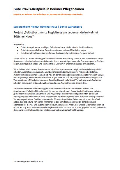 Projekt „Selbstbestimmte Begleitung am Lebensende im Helmut Böttcher Haus“