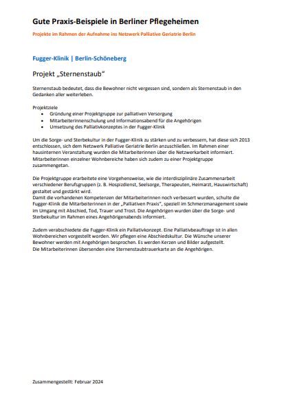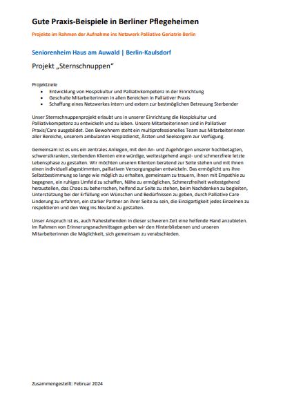 Unser Sternschnuppenprojekt erlaubt uns in unserer Einrichtung die Hospizkultur und Palliativkompetenz zu entwickeln und zu leben.