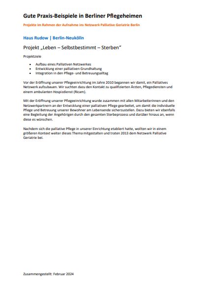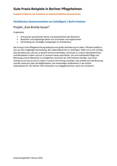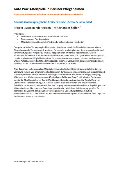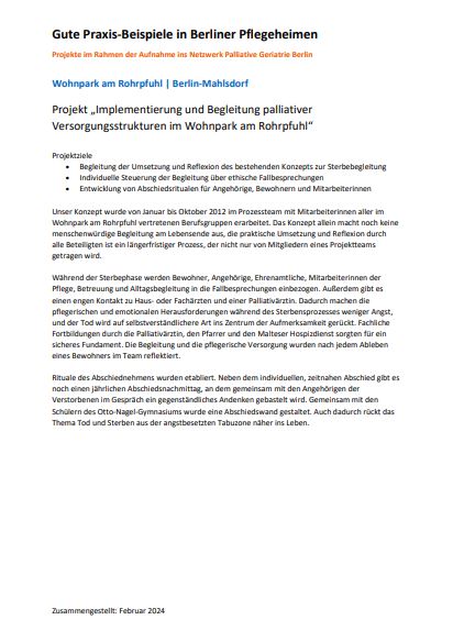 Projekt „Implementierung und Begleitung palliativer Versorgungsstrukturen im Wohnpark am Rohrpfuhl“