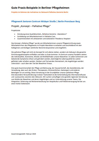 - Senatsveraltung für Wissenschaft, Gesundheit und Pflege sowie die Zentrale Anlaufstelle Hospiz