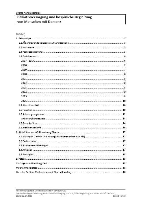 Weitere Dokumente zum Handlungsfeld "Hospiz- und Palliativversorgung für Menschen mit Demenz" befinden sich in der "Guten Praxis Datenbank".
